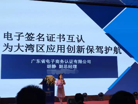 網(wǎng)證通副總經(jīng)理胡靜以《電子簽名證書互認(rèn)為大灣區(qū)應(yīng)用創(chuàng)新保駕護(hù)航》為主題進(jìn)行演講