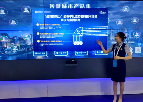 中國通服的綜合講解員進行“電子認證”的產(chǎn)品講解
