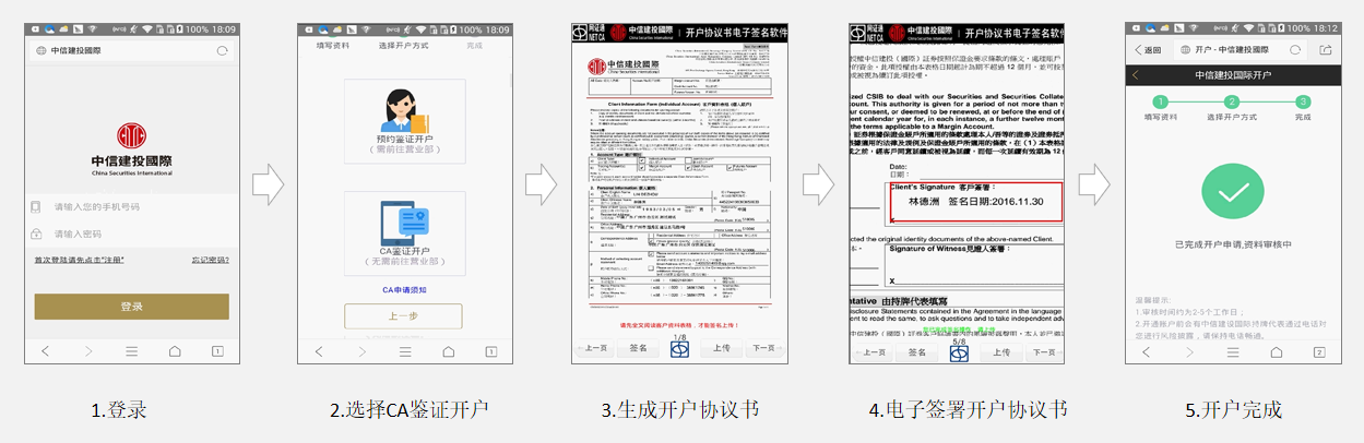 中介人于網(wǎng)上與客戶建立業(yè)務(wù)關(guān)系時(shí),客戶可使用具備粵港證書互認(rèn)資格的CA機(jī)構(gòu)簽發(fā)的數(shù)字證書進(jìn)行客戶協(xié)議的電子簽署,與書面文件上的簽名具有同等法律效力,辦理香港及海外市場的開戶。